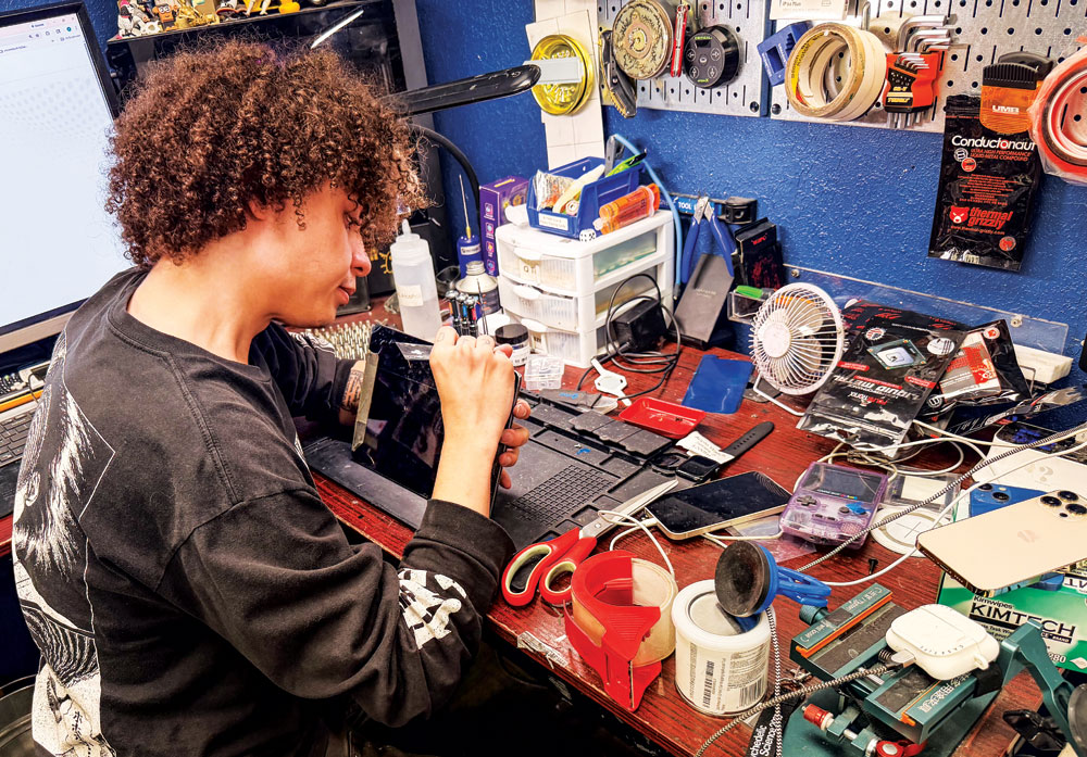 Calling himself a “tinkerer,” master technician Izzy Kerst repaired a tablet at Phone Repair and More.