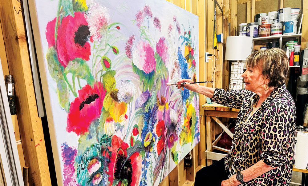 Papé’s paintings are inspired by nature—colorful flowers reminiscent of a summer garden.