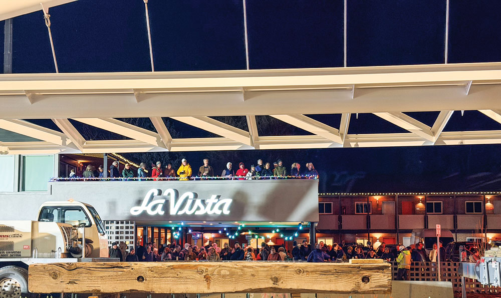 In early February, the Hudson Street arch was raised outside the La Vista Motel. The parking lot and upper deck were filled with people who wanted to see the work in action.