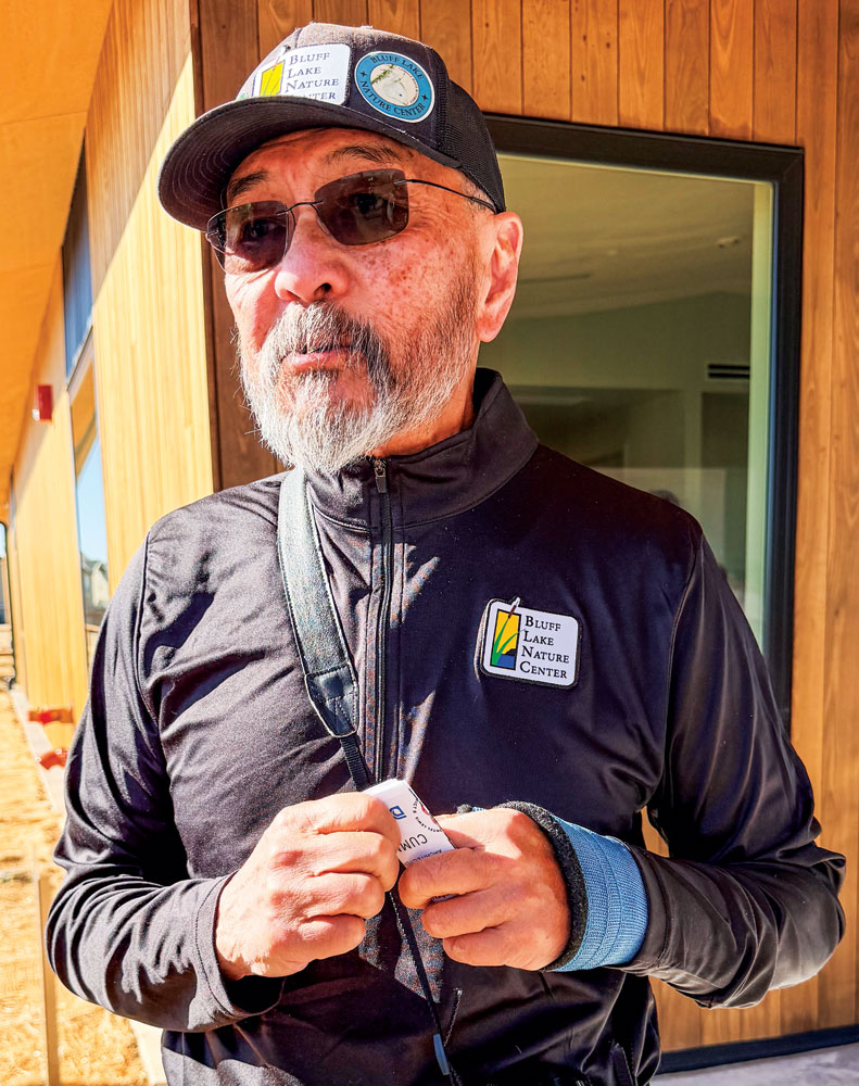 Birder George Ho, who leads bird walks at the nature center, sees opportunity ahead. He was excited to see the space, which includes a metal sculpture of geese in flight on the outside wall to honor his commitment to Bluff Lake.