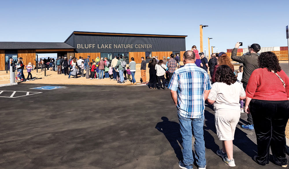 On the morning of Feb. 14, people lined up to enter Bluff Lake Nature Center and see the campus improvements. Front Porch photo by Christie Gosch