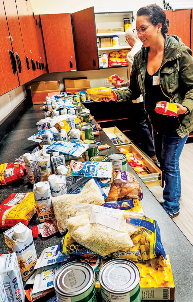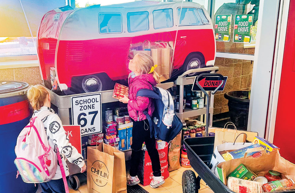 Students at William “Bill” Roberts K–8 School “fed the bus” with donations. With double the usual number of families seeking support, the school turned its food drive into a competition.