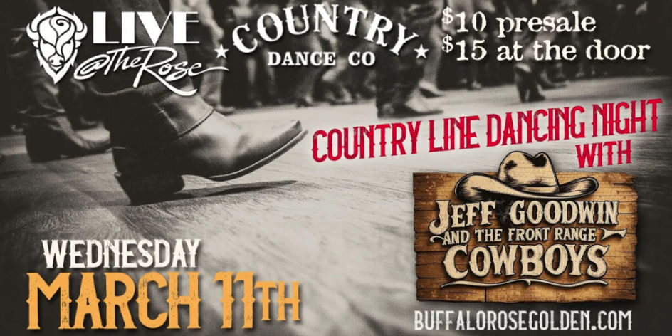 Get ready to boot scoot and boogie at Golden’s hottest country night! Join Jeff Goodwin and the Front Range Cowboys for an evening of toe-tapping tunes and line dancing that’ll have you two-stepping till closing time. These local favorites know how to pack a dance floor and keep the energy high with authentic country sounds that’ll transport you straight to honky-tonk heaven. Whether you’re a seasoned line dancer or just looking to kick back with some cold drinks and hot music, this is your chance to experience the magic that’s been building a devoted following across the Front Range.