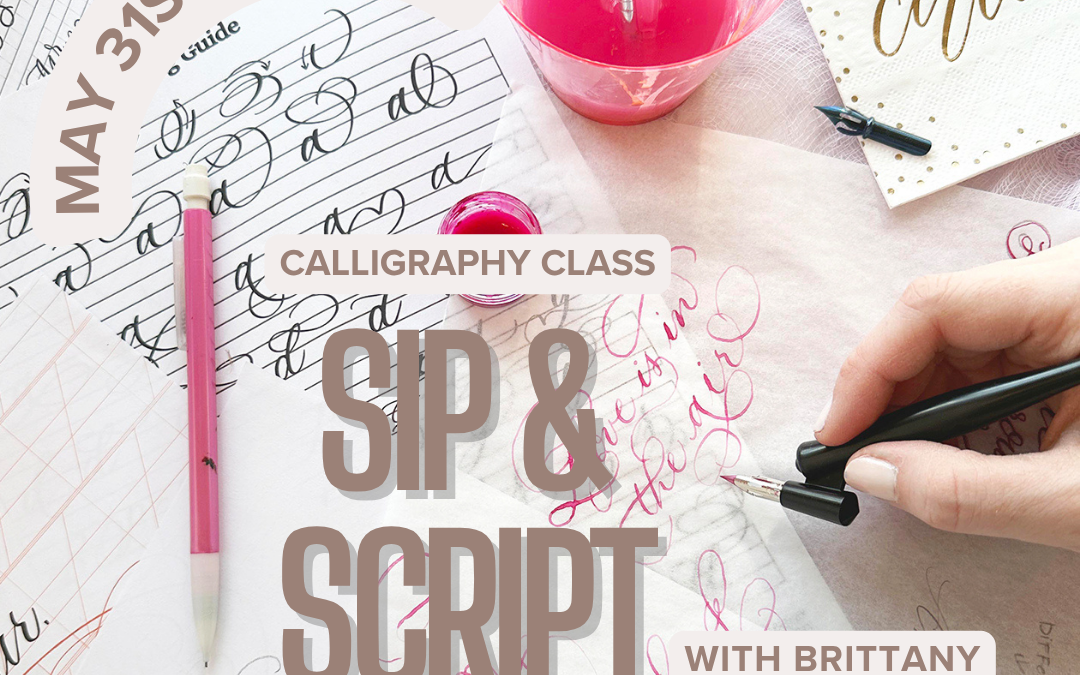 Join us for this great new workshop from Sip and Script for pretty lettering! Whether you’re a stationery nerd, DIY Bride-to-be, or just a crafty individual, you’ll be introduced to modern calligraphy with a pointed dip pen and ink in this workshop. We will cover all the basics and prepare you to add those unique lettered details to your snail mail, wedding paper goods, home decor, and more! The perfect crafty afternoon out!