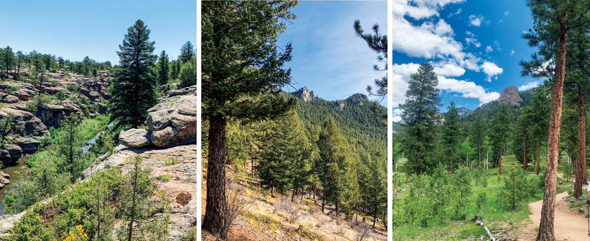 Left: 4) Castlewood Canyon State Park. Middle: 5) Golden Gate Canyon State Park. Right: 6) Staunton State Park