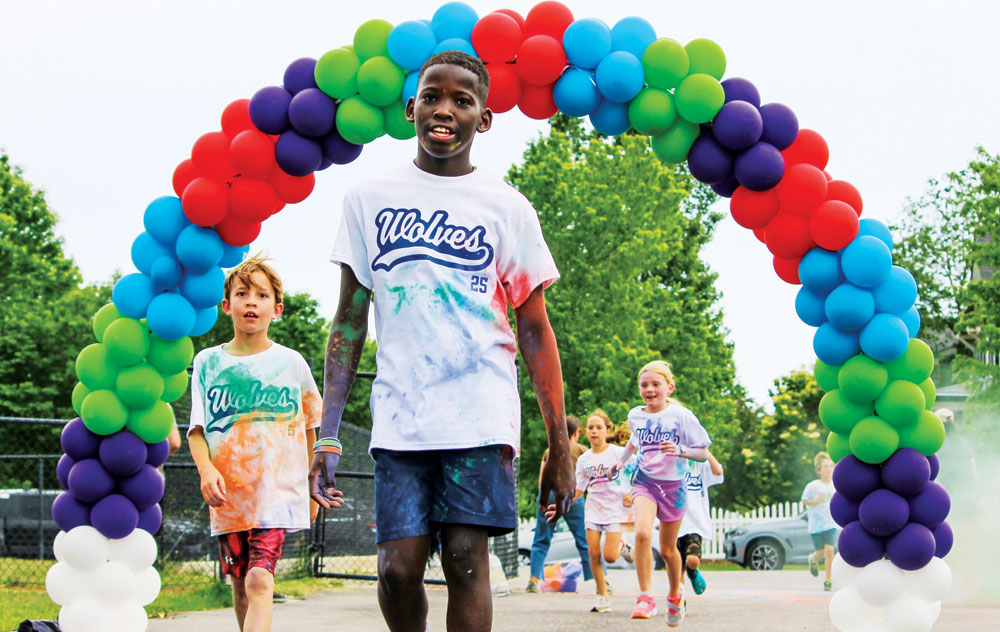 Westerly Creek Elementary School students cross the finish line of the color run. Front Porch photo by Christie Gosch