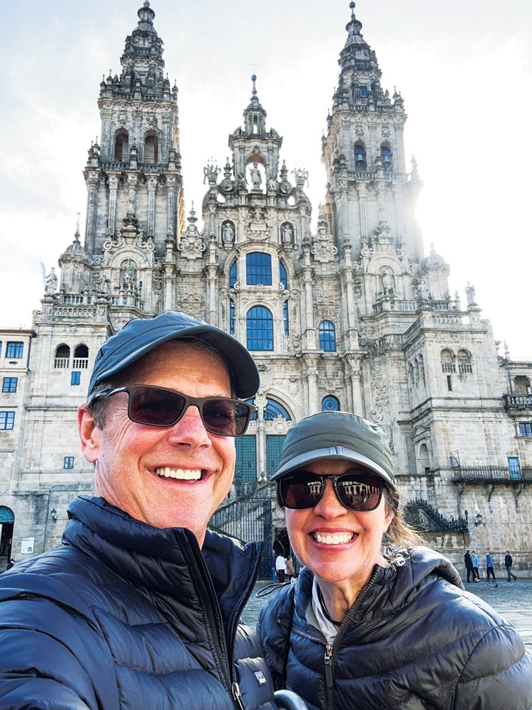 Karl and Carol Fennell in front of Cathedral of Santiago de Compostela. Photo courtesy of Carol Fennell