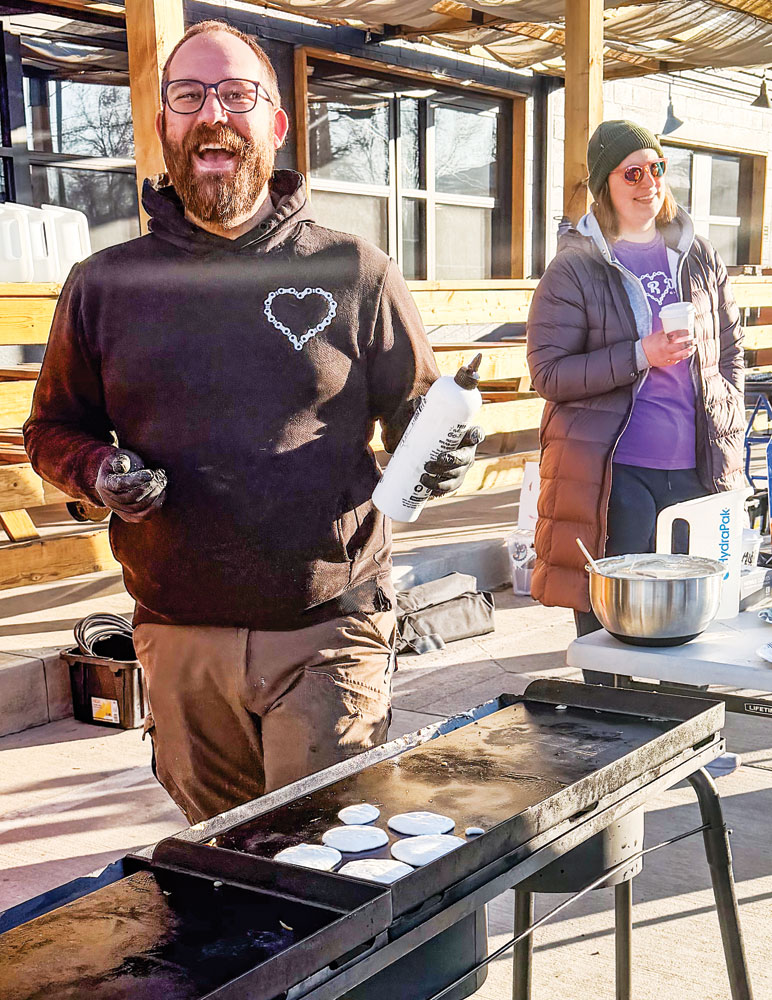MacKenzie and Abby Hardt served pancakes to cyclists on Winter Bike to Work Day in February. Front Porch photo by Christie Gosch