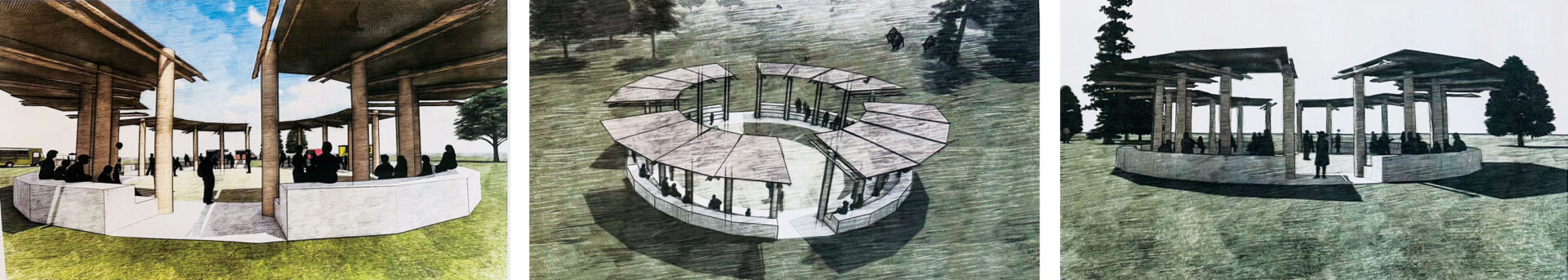Renderings of the proposed arbor for gatherings.