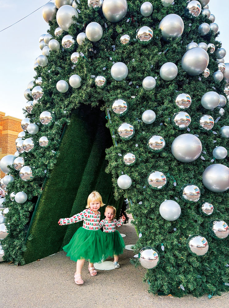 Sisters Elouise and Phoebe, from Central Park, run through the Christmas tree at The Shops at Northfield.