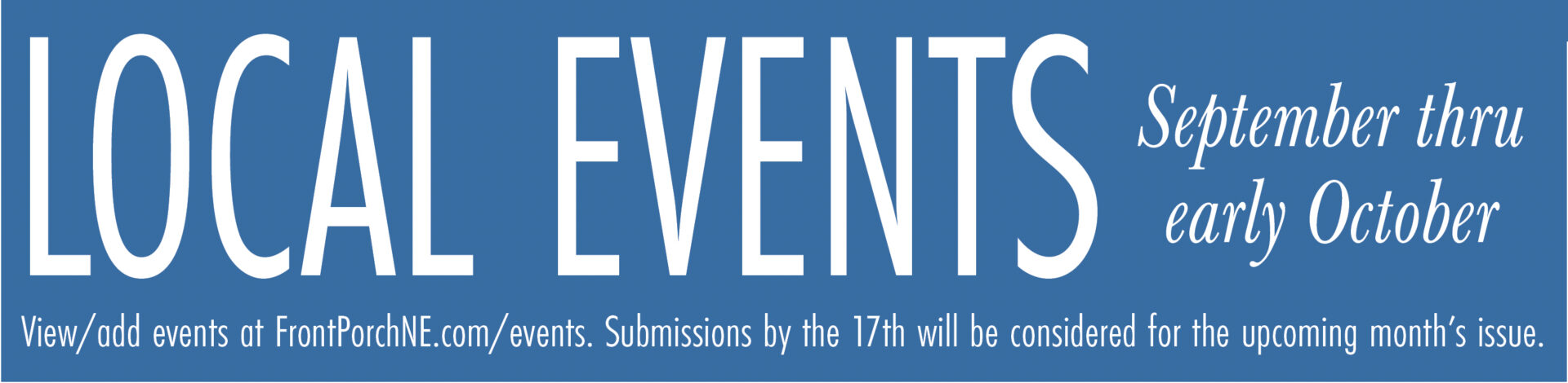 Listings at www.FrontPorchNE.com —> Events (tab) —> Ongoing Events